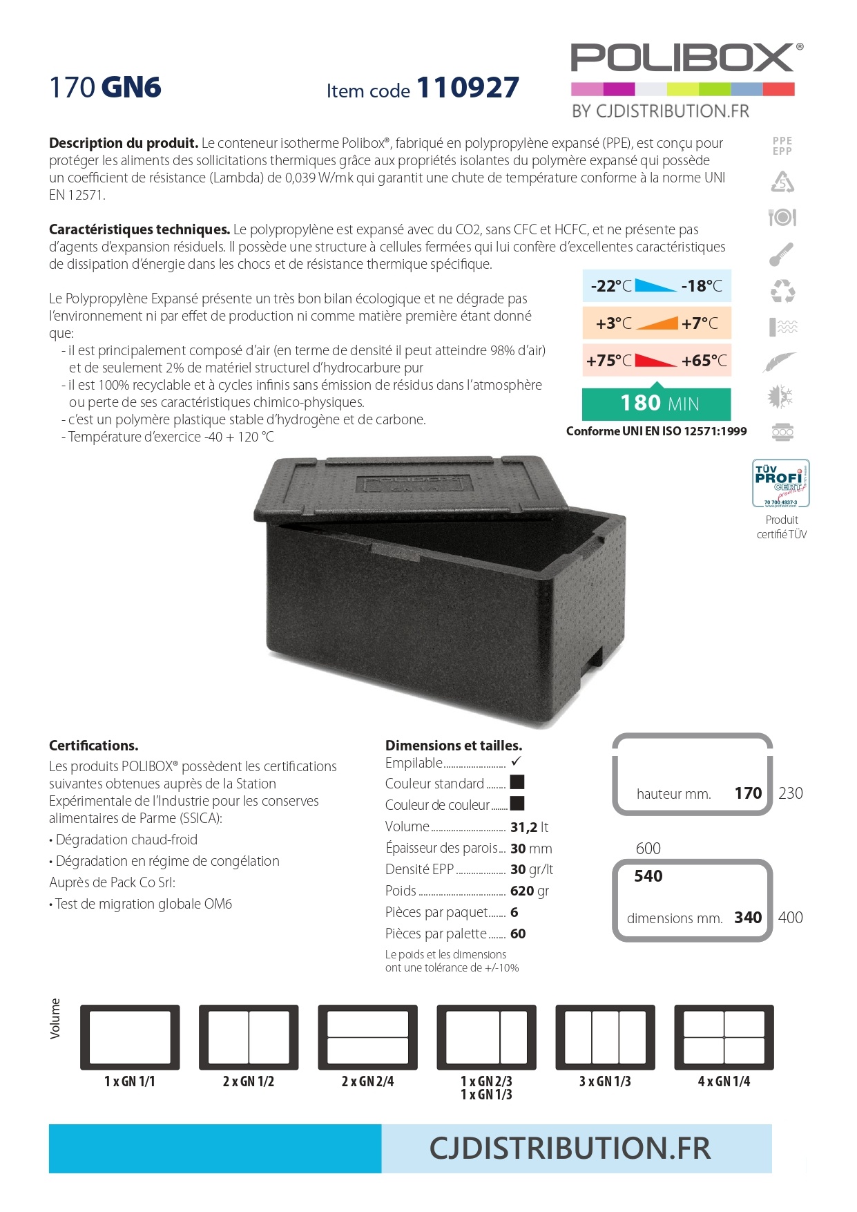 Conteneur Isotherme POLIBOX GASTRO GN 1/1 - 110/170/210/280mm - A partir de